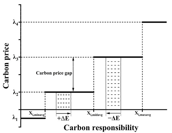Based on the above, the ladder-type carbon trading cost is formed as Equation (47). Figure 3 shows the schematic diagram of the ladder-type carbon price model.