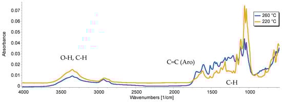 FTIR spectrograph of hydrochar produced at 260 °C and 220 °C.