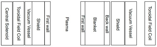The transmutation reactor was modeled using one-dimensional cylindrical geometry (Figure 1). Table 1 provides the reactor’s radial components and their material composition; the radial components are a central solenoid (CS), TF coil, vacuum vessel, shield, blanket, and plasma. It was assumed that half of a plasma current is driven by a CS, and the rest is driven by a external current drive system. The blanket was placed only in the outboard region of the reactor, and tritium self-sufficiency could be satisfied by the addition of neutrons produced by the fission of the TRU. Natural lithium can therefore be used, whereas 6Li enrichment is necessary in the case of a fusion reactor.