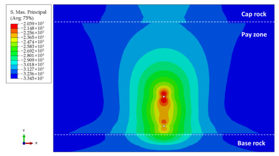 Maximum principal stress distributions of Well-A after water injection.