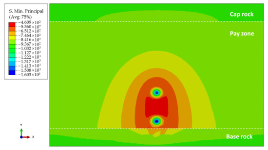 Minimum principal stress distributions of Well-A after water injection.