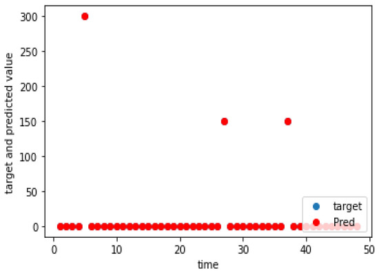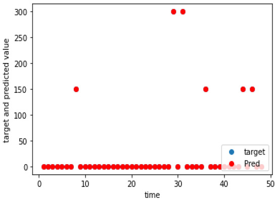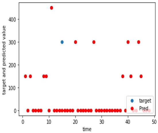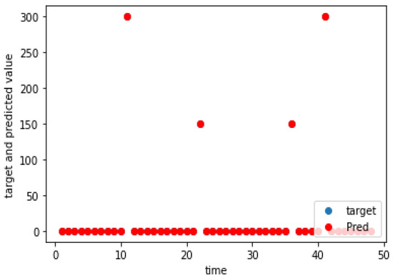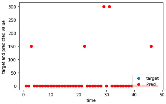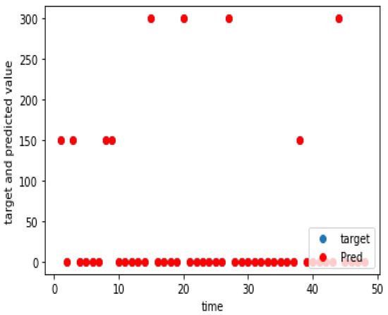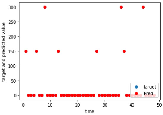 The charging demand prediction was performed for the seven charging locations of the e-buses by the methodology in Section 3. The actual and predicted charging demands for the seven charging locations for weekdays, as well as weekends, are shown graphically in Figure 5, Figure 6, Figure 7, Figure 8, Figure 9, Figure 10, Figure 11, Figure 12, Figure 13, Figure 14, Figure 15, Figure 16, Figure 17 and Figure 18, respectively. It was observed that the charging load of weekdays was more than weekends for all the charging locations. This was due to the fact that buses are less frequent on weekends. The figures also indicate the effectiveness of the random forest in predicting the charging load.