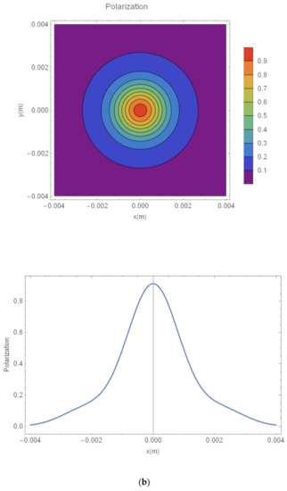 Figure 6. The value for each quantity was obtained as an average over 28,000 shots with a bin width of 0.01. The maximum degree of polarization reached over 90%, which was concentrated at the center of the distribution of polarization. In the concentric distribution, the degree of polarization represented more than 90% based on 0.3, the degree of polarization represented over 60% for greater than 0.2 and less than 0.4, and the degree of polarization represented over 30% for greater than 0.1 and less than 0.5. The degree of polarization below 30% was ignored. The distribution of polarization in the two-beam system was concentrated in the center by more than approximately 7% compared to the single-beam system.