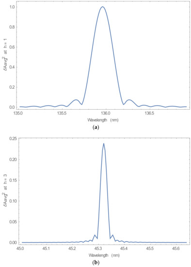 Figure 1. Each maximum value represents the fundamental and higher-order modes of h = 1, h = 3, and h = 5. The maximum values for a single beam and two beams were in the range of