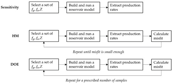 A standard workflow in matching the historical production data with a selected set of matching parameters usually consists of selecting the initial guesses of these parameters, creating a set of model realizations, running multiple forward problems to get a misfit between the computed and historical data, and use an optimizer to minimize the misfit value [29].