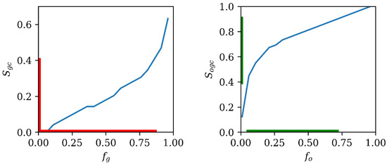 Consider a fixed gas threshold ratio and varying the oil threshold ratio , while keeping the parameters , equal to constant values as specified in the previous section. The gas and oil relative permeabilities, corresponding to the parameters as specified above, are presented in Figure 7.