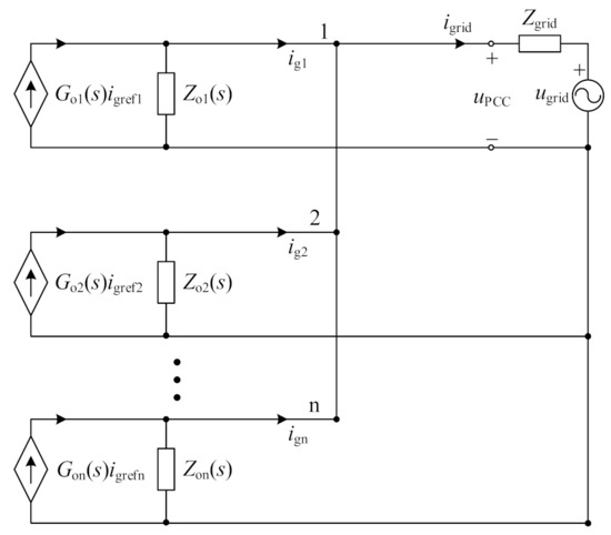 When the hardware parameters, control methods, and output current given signals of all grid-connected converters are precisely the same, the total output current of the converter cluster composed of n converters is equivalent to n times the grid-connected current of a single converter under the condition that the grid impedance increases n times.