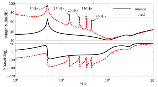 To sum up, the Bode diagram of the output impedance of the grid-connected converter, using or not using the combined harmonic suppression strategy, can be drawn as shown in Figure 16.