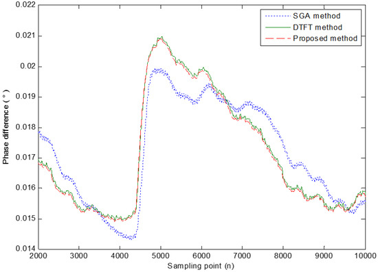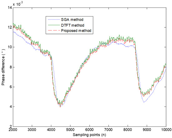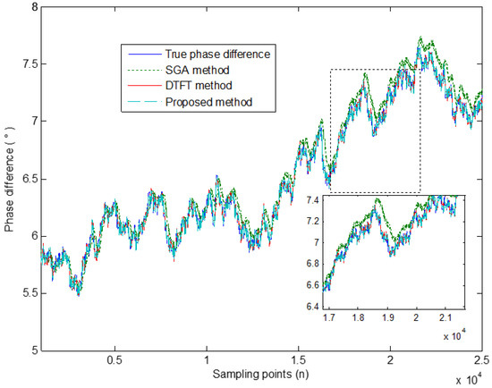 It can be seen from Equation (20) that the proposed method can obtain high phase difference precision, whether the signal frequency is known or not. In addition, even if the signal amplitude is unknown and the number of sampling data points is anon-integer period number, the proposed method shows no bias. This is the advantage of the proposed method in this paper.