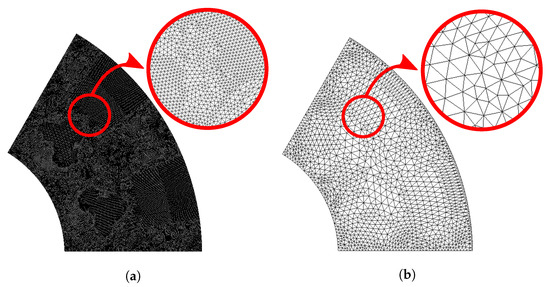 Maximum and minimum mesh densities used for optimization; maximum mesh length of: (a) 0.25 mm and (b) 2 mm.