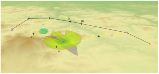The article does not deal with the subject of dynamic obstacles. With regard to the use of static obstacle/hazard models, we rely on two basic assumptions. Firstly, the objects threatening the UAV are anti-drone systems of various types, with ranges modeled using a semi-sphere, as shown in Figure 3. Such models work in most applications when we know the risk or at least can presume its type. When we do not know the exact nature of the hazard, we define the area in which it occurs (usually it is convex polygons) and determine the maximum altitude to which the object threatens the aerial vehicle for this area. It is a very practical assumption due to the fact that the majority of UAVs have operational ceilings, in addition to which the cost of the flight is much higher. Moreover, frequent changes in the flight altitude of the platforms significantly reduce their flight duration, so the assumption that obstacles should be circumvented rather than flown over is justified. The article uses a model of obstacles in the form of convex polygons, which does not reduce the general nature of considerations. The presence of obstacles in the field increases the number of grid vertices where mission planning tasks are solved.