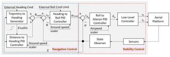 - Navigation algorithms—heading control, flight along a required route, loiter, etc. These algorithms were also based on PID controllers supported by mathematical algorithms and input/output signal shaping systems.