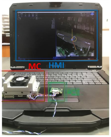 The proposed technique for flight control and mission planning of the aerial vehicle was applied and tested employing ARM processor architecture. The hardware-in-the-loop (HIL) environment shown in Figure 17, that includes FCC and MC, was used for the tests.