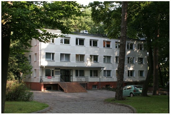 The selected lecture room is located in the educational building of the UWM in Olsztyn (Figure 1). The university is located in the North-East region of Poland. The campus, Kortowo (Figure 2), considered the greenest in Poland, is located on the edge of the forest by the lake and has its own park. In the summer it is a place of green schools and tourist camps for children.