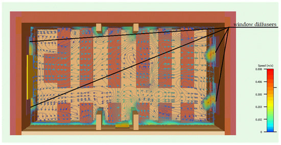 Many works have been devoted to the thermal comfort of rooms in the education sector. Thermal comfort is currently one of the most frequently discussed issues in the field of building environments. It is often discussed in the context of providing proper conditions for learning and working in educational buildings. According to ISO 7730:2006 [43], the operating temperature in auditoriums and school classes in summer conditions should fluctuate around 24.5 °C, and in winter, around 22.0 °C. In Category A facilities, the permissible deviation from the assumed operating temperature is ±1.0 °C. In category B facilities, the permissible deviation may be ±1.5 °C in summer conditions and ±2.0 °C in winter conditions. In category C facilities, the permissible deviation from the assumed operating temperature may be ±2.5 °C in summer conditions and ±3.0 °C in winter conditions. The maximum allowable average airspeed in summer conditions for category A facilities is 0.12 m/s, for category B facilities, it is 0.19 m/s, and for category C facilities, it is 0.24 m/s. In winter, the maximum allowable average airspeed in summer conditions for category A facilities is 0.10 m/s, for category B facilities, it is 0.16 m/s, while for category C facilities, it is 0.21 m/s. These assumptions are valid for a user activity of about 70 W/m2, a turbulence intensity of 40%, and a relative humidity of 60% in summer and 40% in winter. On the basis of the Zomoradia et al. review work, it could be stated that the significance of the thermal comfort study is related to the relationship between the occupants’ satisfaction in the built environment, the functioning of the building, and energy consumption [45]. Students spend much of their time in schools; thus, it is important to provide good thermal comfort and indoor air quality levels. Thermal discomfort in educational buildings can create unsatisfactory conditions for both teachers and students [46].
