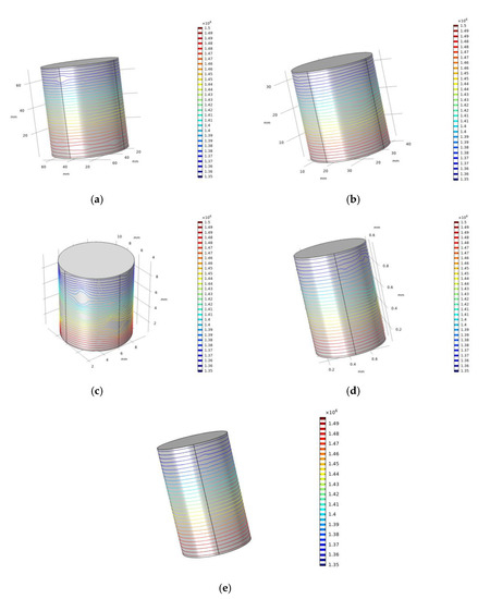 Figure 13. Pore pressure distribution diagram (unit: Pa). (a) Sample C1; (b) Sample C2; (c) Sample C3; (d) Sample C4; (e) Sample C5.