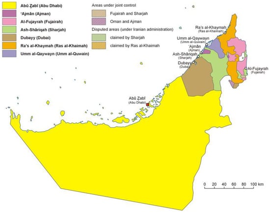 Administrative division map of the UAE. Reprinted from Ref. [18] with permission from Elsevier (Copyright 2018).