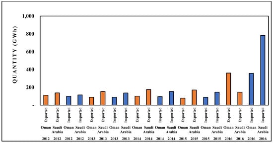 Export and import quantity (GWh) to Oman and Saudi Arabia [81].