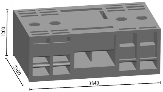 Taking the whole pump station project as the research object, the geometric model of station building was established. The total length along the water inlet and outlet direction (longitudinal axis) of the station building is 23.0 m, along the transverse axis of the station building are four units and sluice gates, with a total width of 38.4 m, a floor elevation of 6.9 m, and a motor floor elevation of 18.9 m, and a total of 12.0 m. The geometric model of the station building is shown in Figure 1.