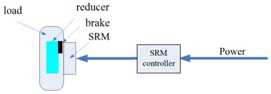 Considering the disadvantages of the limited layout of parts and the low transmission efficiency in loaders’ drive systems, in this work we developed a wheel electric drive system based on an SRM, as shown in Figure 3.