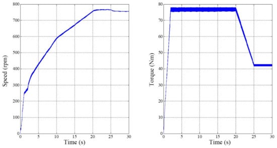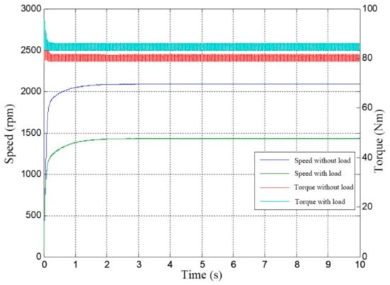 Generally, each of the loader’s working conditions requires the motor’s response to a constant step or continuous change. The simulation results show that the SRD has good responses to the changes in torque and speed.