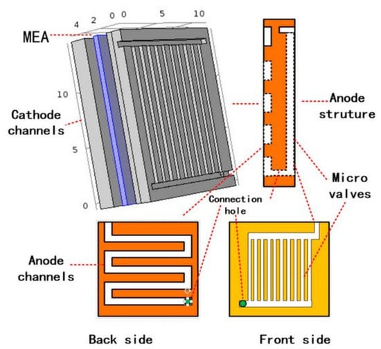 Schematic of the three-dimensional fuel cell model incorporating the microvalve structure [113].