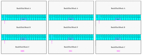 Figure 5. Profile of the sill pillar recovery scheme of SBS, SS1, and SS2.