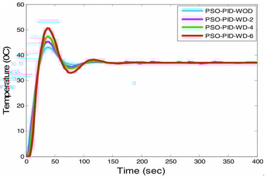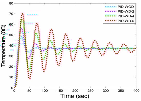 Ambulance output comparison plot of PID controller in terms of time and temperature.