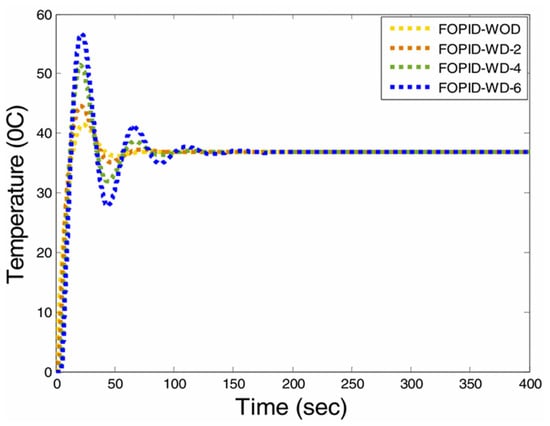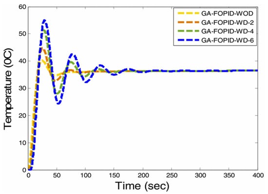 23], the authors mentioned that the design of FOPDT plants can be used to address the fragility of fractional-order PID controllers. The researchers supposed that the controller parameters are subject to changes and variations. In a practical approach, the parameters are adjusted manually. Knowledge about FOPID fragility can be very important. Knowledge of control performance fragility can also be useful in the non-ideal realization of fractional-order PID controllers. An important study conducted in [