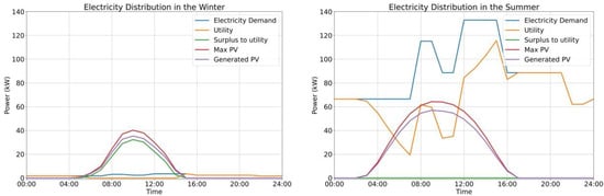 - To compare carbon emissions from the optimised energy system to those from the current hotel energy system, hourly electricity distribution for 24 h in mid-January and mid-July were extracted from the results simulated from the optimised model run and the utility-only model, respectively. A line graph was generated for the purpose of comparison;