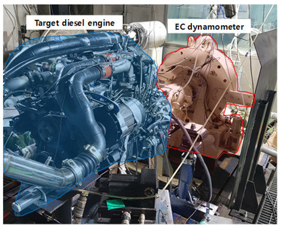 Figure 1 shows a photograph of the engine employed for the DPF test in this study. The engine is a 300 hp class diesel engine (D6DA) designed for a 300 ps class ship. The engine is a 6.6 L DI engine that produces a maximum output of 306 hp at 2500 rpm and satisfies Euro 3 regulations.
