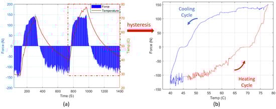 SMA is a genre of smart material discovered in 1941 by Arne Ölander [14]. SMA can be fabricated at the desired shape at high temperatures; after that, SMA can be easily deformed due to a change in stress or temperature, as its temperature drops below a specific temperature, known as the martensite finish temperature (Mf), and regains its desired shape due to a produced force as it reaches a particular temperature, known as the austenite finish temperature (Af) [15]. Deformation occurs due to the unique thermomechanical properties of the SMA, leading to the development of recovery forces to regain its desired shape, a phenomenon known as the shape memory effect (SME) [16]. There are many types of SMA, such as Cu-Zn, Cu-Al, and Ni-Ti, depending on the chemical compound of the SMA, where the properties of SMA can be illustrated in hysteresis diagrams showing its behavior under different applied conditions [17]. NiTi (also known as NiTiNOL) is the most common type of SMA since it has a wide range of activation temperatures, is durable, and is inexpensive [18]. SMAs have many recent applications in different disciplines such as biomedical, aerospace, civil, and mechanical engineering [19,20,21].