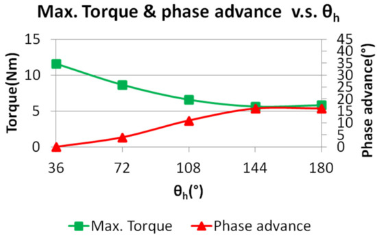 - The angle θh between the two HCF magnets for one pole is set as a variable.