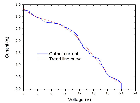 The open-circuit voltage divided by the internal resistance of the TEG equals the short-circuit current . Therefore, the previous equation for a certain point “A” with a voltage value and current is expressed as follows: