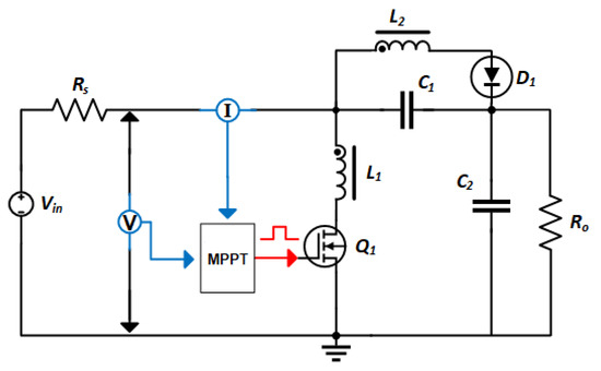 Schematic diagram of the converter used to evaluate the proposed MPPT algorithm.