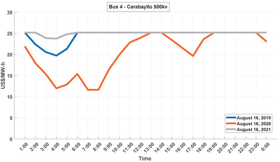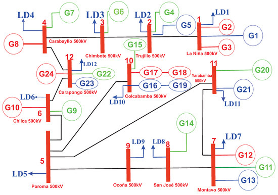 | B4 | Carabayllo 500 kV | 1.000 | −6.63 | 1379.7 | 900.5 | 908.6 | 643.6 | 500 |
