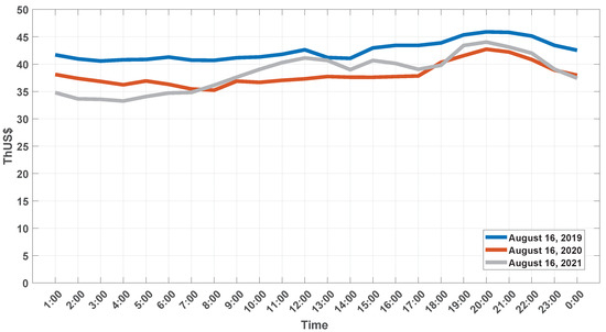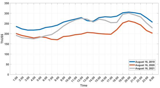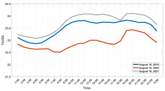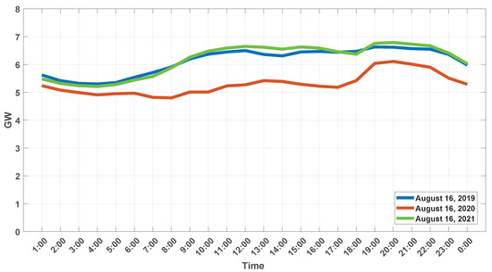 | Hour | 16 August 2019 | 16 August 2020 | 16 August 2021 | Hour | 16 August 2019 | 16 August 2020 | 16 August 2021 |
