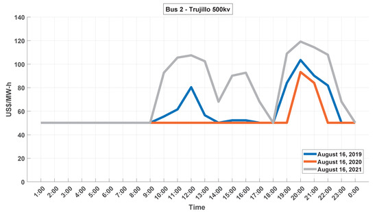 - The Peruvian integrated gas–electricity system was modeled, simulating the behavior of the short-term markets when the electricity and gas markets were coupling, through the application of discrete nonlinear programming.