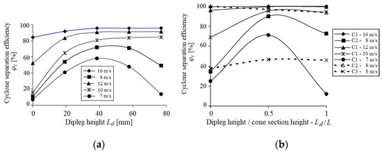 For example, the author of [55] combined the variables determining the cyclone separation efficiency (cyclone main dimensions, air and dust flow parameters) and presented the cyclone efficiency as a function: