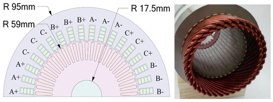 All of these techniques share the common disadvantage of increasing the manufacturing complexity in terms of the time and cost, but may also lead to a lower slot fill factor and higher DC copper loss. Therefore, the number of conductors within each slot is limited to 8 ÷ 10 by the actual manufacturing process, with a slot fill factor of up to 0.7 [18,19,20].