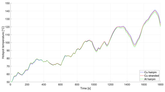 Figure 13 shows a comparison of the temperature trends for the motor hotspot over the entire drive cycle.