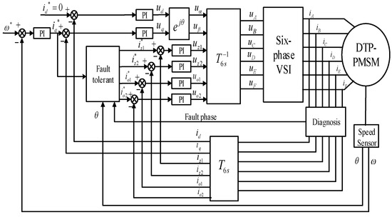 The motor parameters are shown in Table 2. The DTP-PMSM neutral is isolated. The control system of DTP-PMSM is shown in Figure 3.