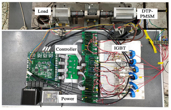 A DTP-PMSM experimental platform was built to verify the effectiveness of the strategy proposed in this paper. The experimental platform is shown in Figure 15. The main controller adopts DSP chip TMS32028335.