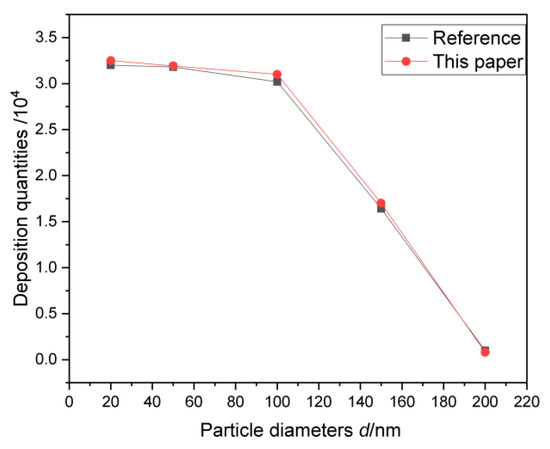 Before computation, it is important to validate the model by conducting a comparison with other numerical calculations. The spiral groove gas face seal in the literature [26] was calculated to compare the variation rules of deposition quantities and particle diameters. The results presented in Figure 5 in this paper are in good agreement with the literature [26].