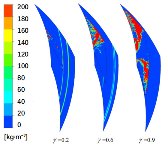 - The three-dimensional double precision solver is adopted, which is based on the pressure velocity coupling SIMPLEC algorithm, and the momentum and volume fraction are solved by the first-order upwind difference scheme. The procedure is repeated until the convergence criteria on force balanced and pressure are satisfied; the convergence precision is set at 10−5. The other parameters, such as the vapor phase volume fraction and opening force, are then calculated.