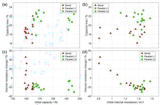 APA StyleYagci, M. C., Feldmann, T., Bollin, E., Schmidt, M., & Bessler, W. G. (2022). Aging Characteristics of Stationary Lithium-Ion Battery Systems with Serial and Parallel Cell Configurations. Energies, 15(11), 3922. https://doi.org/10.3390/en15113922