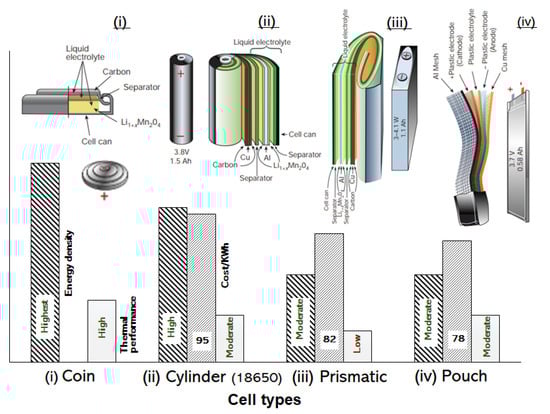 - Quinn, J.B.; Waldmann, T.; Richter, K.; Kasper, M.; Wohlfahrt-Mehrens, M. Energy Density of Cylindrical Li-Ion Cells: A Comparison of Commercial 18650 to the 21700 Cells. J. Electrochem. Soc. 2018, 165, A3284–A3291. [Google Scholar] [CrossRef]