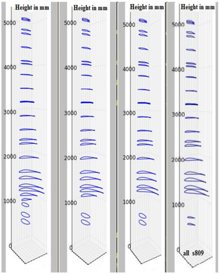 - WTdesign2: constant AoA of 8 degrees spanwise with S809 airfoil and chord from NREL report [42,43,44,45,46,47].