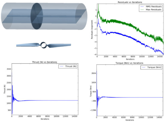 Fluid domain for the wind turbine rotor domain with convergence of thrust and torque values.