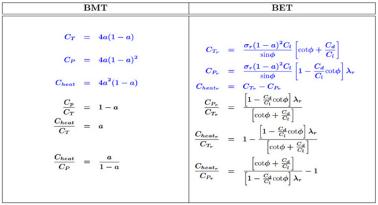 BET for an airfoil section at a specific radius, r, accounting for the glide ratio, tip speed ratio, solidity, twist and angle of attack gives the following relations, which are also summarized in Figure 19.